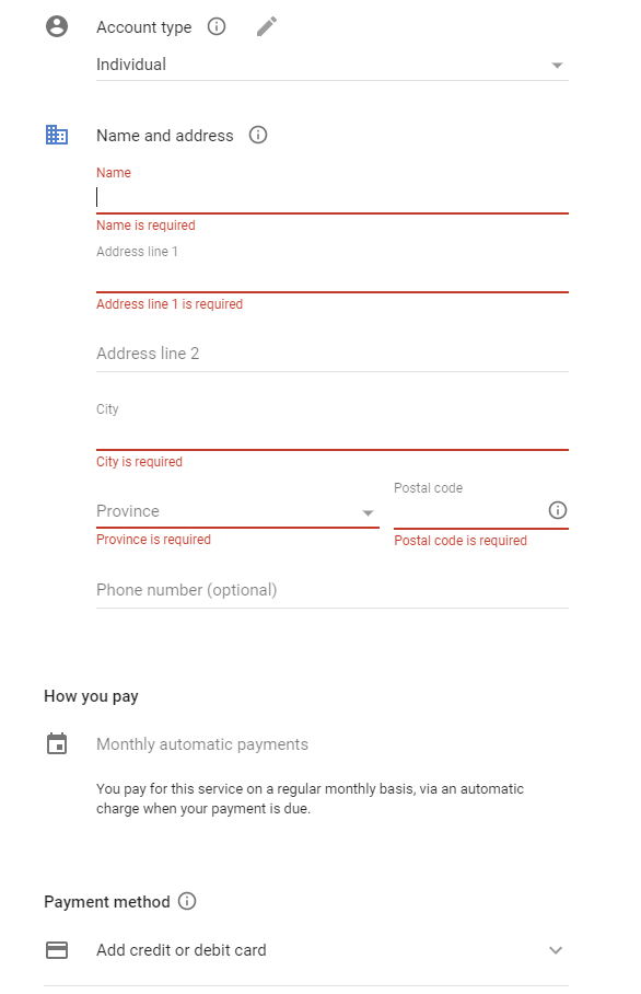 5. From the “Account Type” drop down select “Individual” then fill out Name & Address which includes your home address.