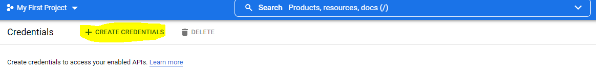 12. Click back on the Hamburger menu on the top left and under APIs & Services click “Credentials“.