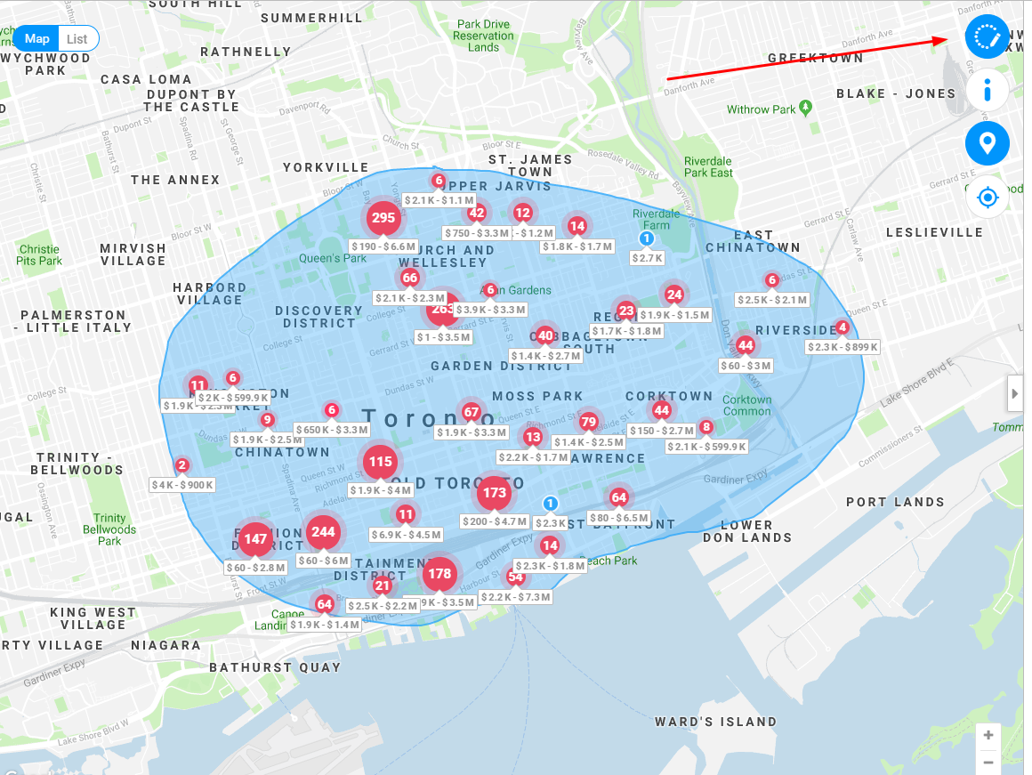 Our map drawing tool lets users draw a custom region in a certain area or neighbourhood. Users can segment by local amenities, building type and add keywords to help refine their search to only look through properties they are primarily interested in. This decreases the amount of time users will spend sifting through properties they aren’t interested in and get to the ones they might consider buying.