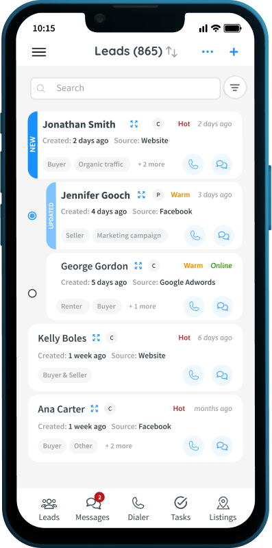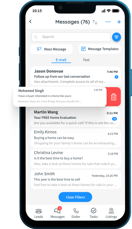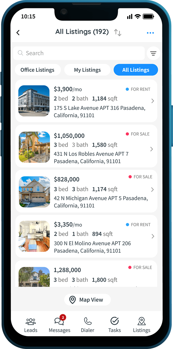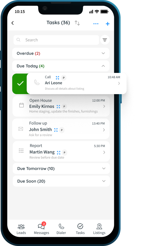 Equip your team with the powerful capabilities of the InCom desktop CRM, now accessible right in the palm of their hands. Both agents and brokerage staff can benefit from features like mass messaging (text and email), an auto-dialer, and lead management. They’ll stay updated with lead notifications, automatically log calls and emails, maintain detailed client interaction records, and efficiently manage tasks to drive greater productivity across the organization.